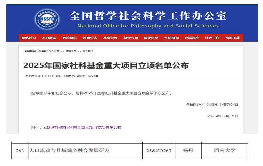 喜报︱学院杨丹教授获得国家社会科学基金重大项目立项资助