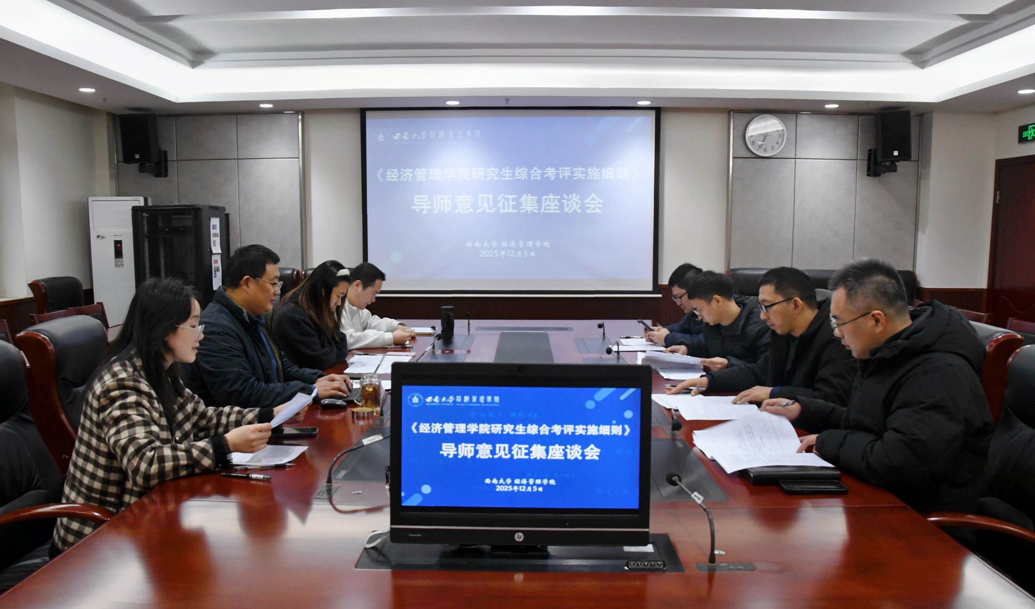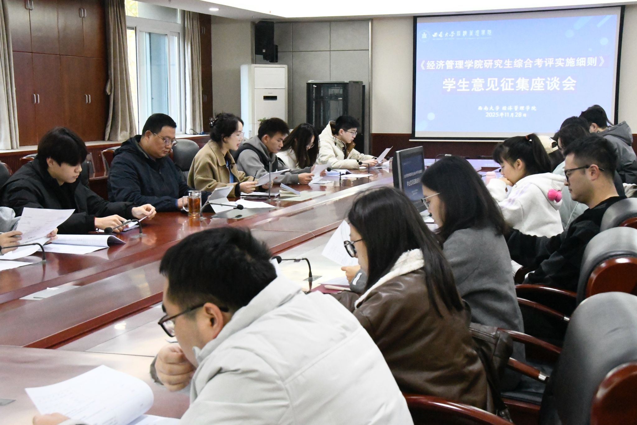 为推进学院研究生综合素质评价机制改革,完善研究生奖助体系,充分发挥激励作用,提升研究生综合能力,学院开展了《西南大学经济管理学院研究生综合考评实施细则》(以下简称《综合考评实施细则》)修订意见交流工作会,工作会分学生场和导师场,分别于11月28日和12月5日在学院举行,学院党委副书记李玉胜、导师代表、研究生辅导员、研究生教学秘书、学生代表参加会议。