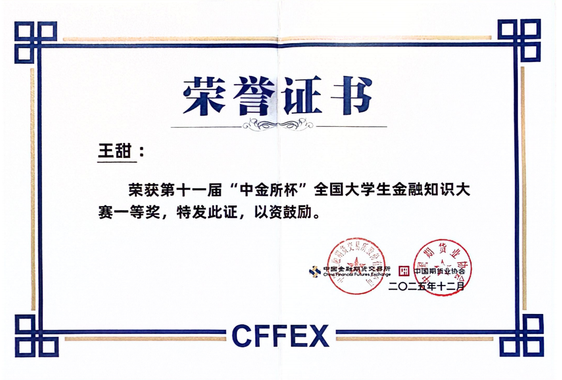 日前,由中国金融期货交易所与中国期货业协会联合主办的第十一届“中金所杯”全国大学生金融知识大赛圆满落幕。学院硕士研究生表现亮眼,首次获得一等奖的新突破。