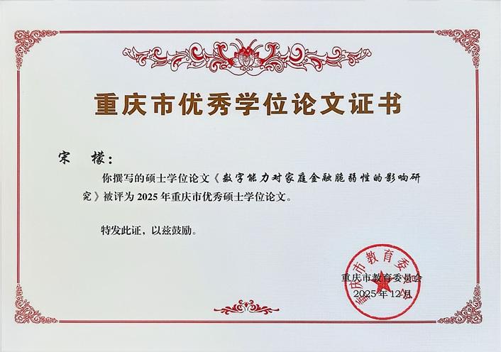 学院两篇金融硕士学位论文获评重庆市优秀硕士学位论文