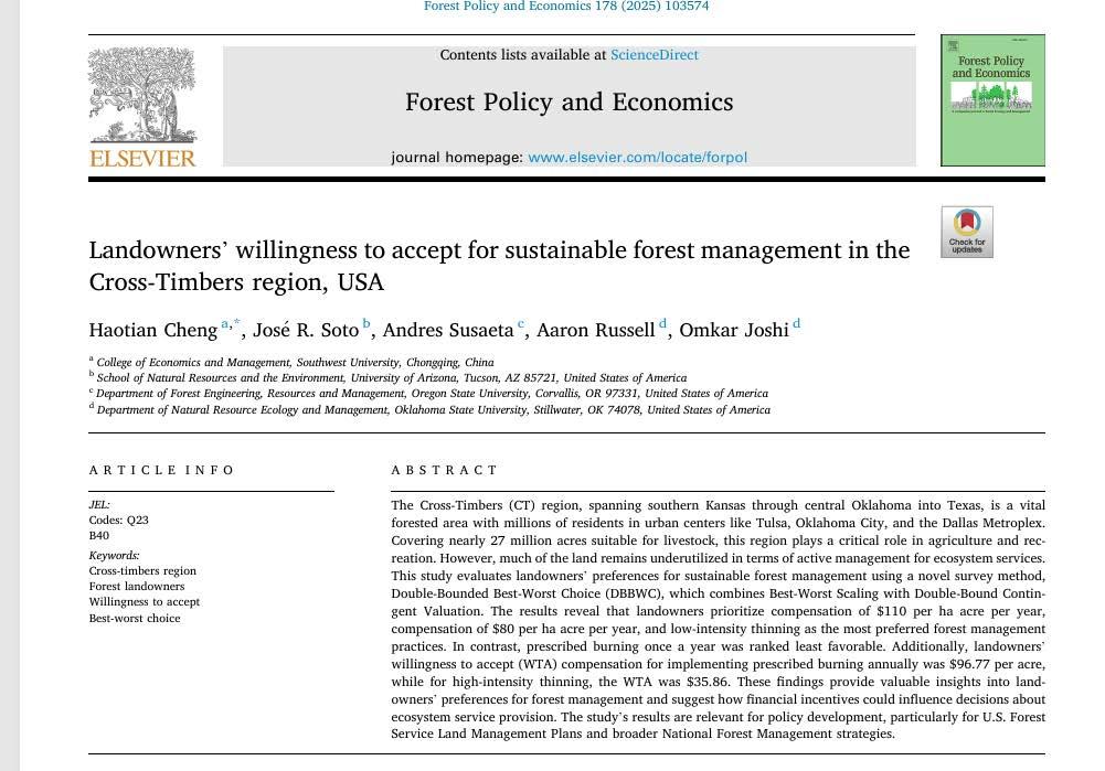 程昊天副教授在国际林业经济学领域取得重要科研进展