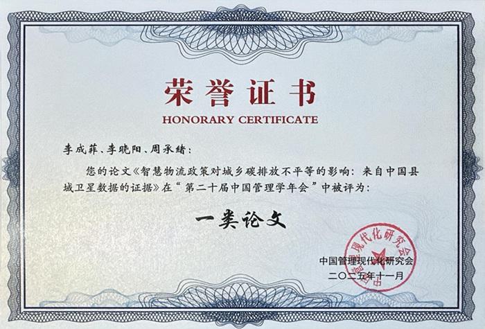 学院李晓阳教授团队撰写的论文获评第二十届中国管理学年会一类论文