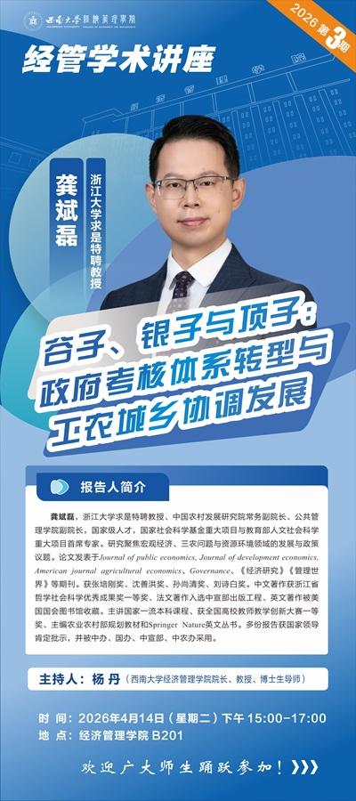 经管学术讲座︱谷子、银子与顶子:政府考核体系转型与工农城乡协调发展