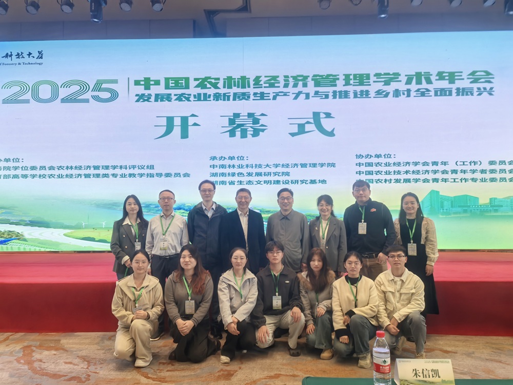 11月1日至2日,2025年中国农林经济管理学术年会在中南林业科技大学举行。本次年会以“发展农业新质生产力与推进乡村全面振兴”为主题,由国务院学位委员会农林经济管理学科评议组、教育部高等学校农业经济管理类专业教学指导委员会联合主办,中南林业科技大学经济管理学院、湖南绿色发展研究院、湖南省生态文明建设研究基地共同承办。学院院长杨丹教授、副院长王小华教授率队参会。