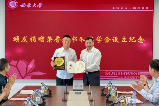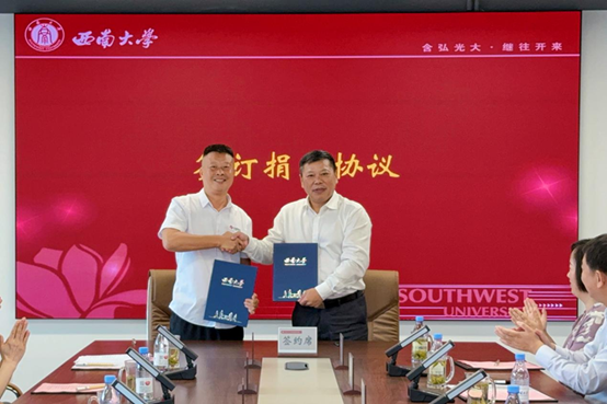 9月29日,西南大学经济管理学院校友企业重庆华美电力设备有限责任公司向西南大学捐赠仪式在学校出版社大楼12楼对外联络办公室会议室举行。