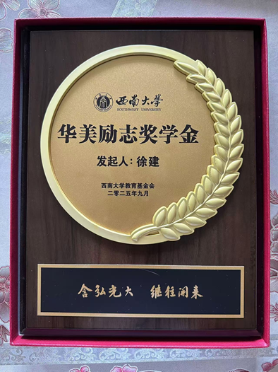 1996级经济管理学院优秀校友徐建捐资300万元,设立西南大学“华美励志奖学金”。仪式上,双方共同签署捐赠协议、完成捐赠支票交接,张卫国为徐建颁发捐赠荣誉证书及奖学金设立纪念牌。