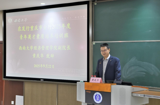 9月22日,由西南大学经济管理学院高层培训中心承办的“农发行重庆市分行2025年度青年英才素质培养培训班”在我院开班。农发行重庆市分行资深业务经理李元伦,西南大学经济管理学院副院长黄庆华,以及培训班全体学员共计50余人出席开班仪式。开班仪式由学院高层培训中心主任苟佳欢主持。