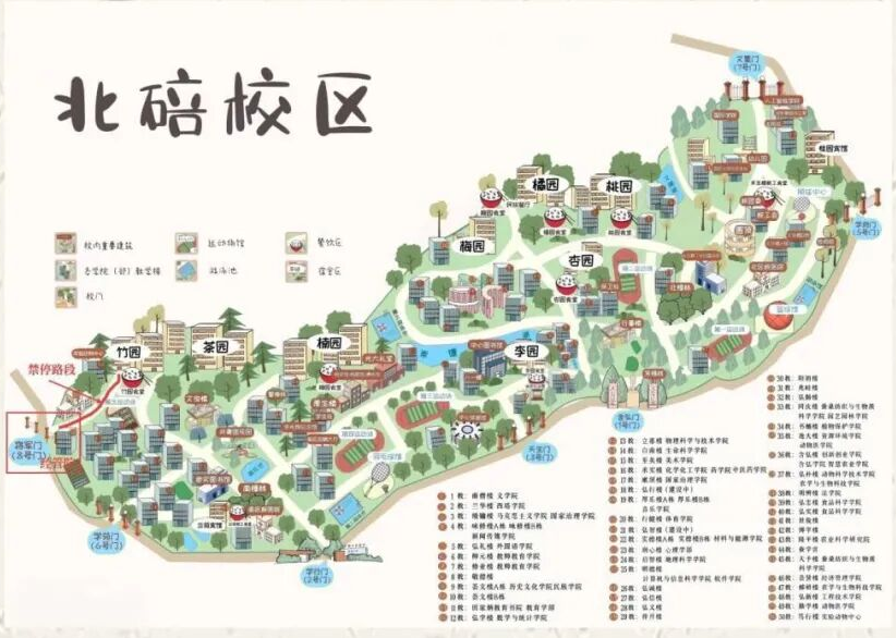 (四)校庆活动期间返校人流、车流量较大,届时建议您尽量乘坐公共交通或打车来校。乘坐地铁六号线,在“西南大学”站下,从1号出口出后,斜对面即西南大学2号门,从校内可步行到经济管理学院;乘坐出租车可直接导航西南大学8号门(经济管理学院);乘坐大巴车可至北碚区将军陵园站,斜对面即西南大学8号门(经济管理学院)。确需自驾到校的:须注意8号门至竹园后山路段为校庆期间车辆进出校园的主要通道,全线不得停车。