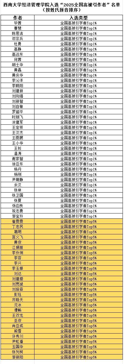学院65位学者入选2025年“全国高被引学者”名单